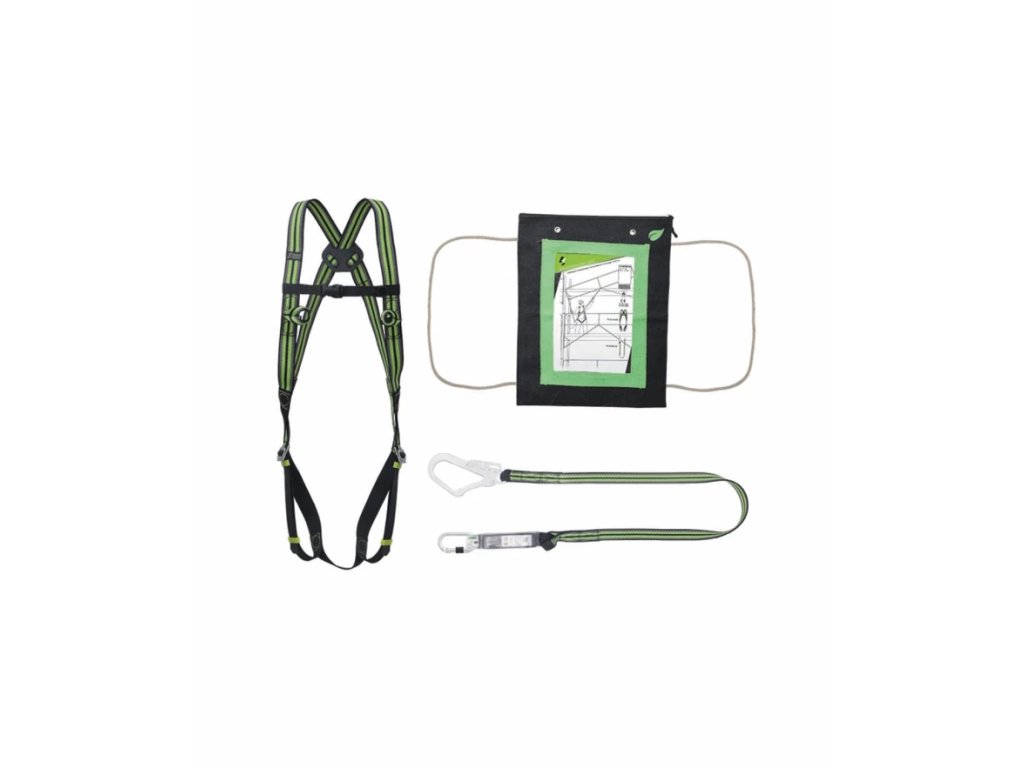 - zloženie sady FA 80 002 00: celotelový bezpečnostný postroj FA 10 103 00 a popruhový spojovací prostriedok s tlmičom pádu, dĺžka 1,80 m, FA 30 304 18