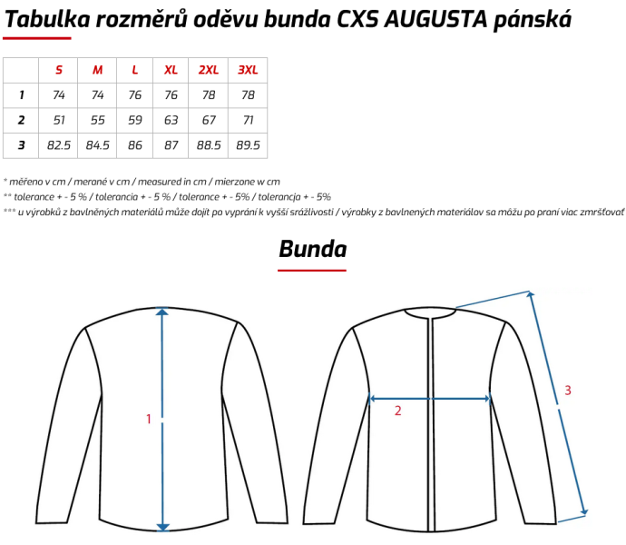 Canis Veľkostná tabuľka bundy muži