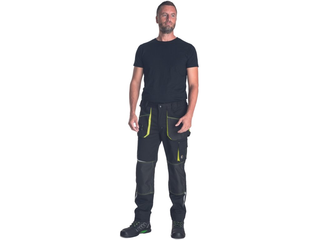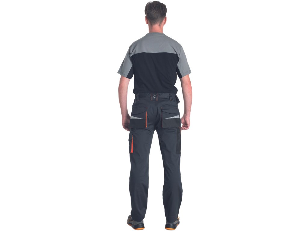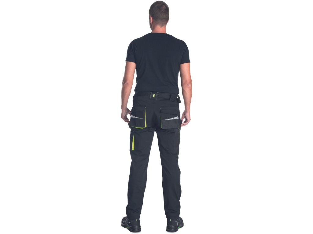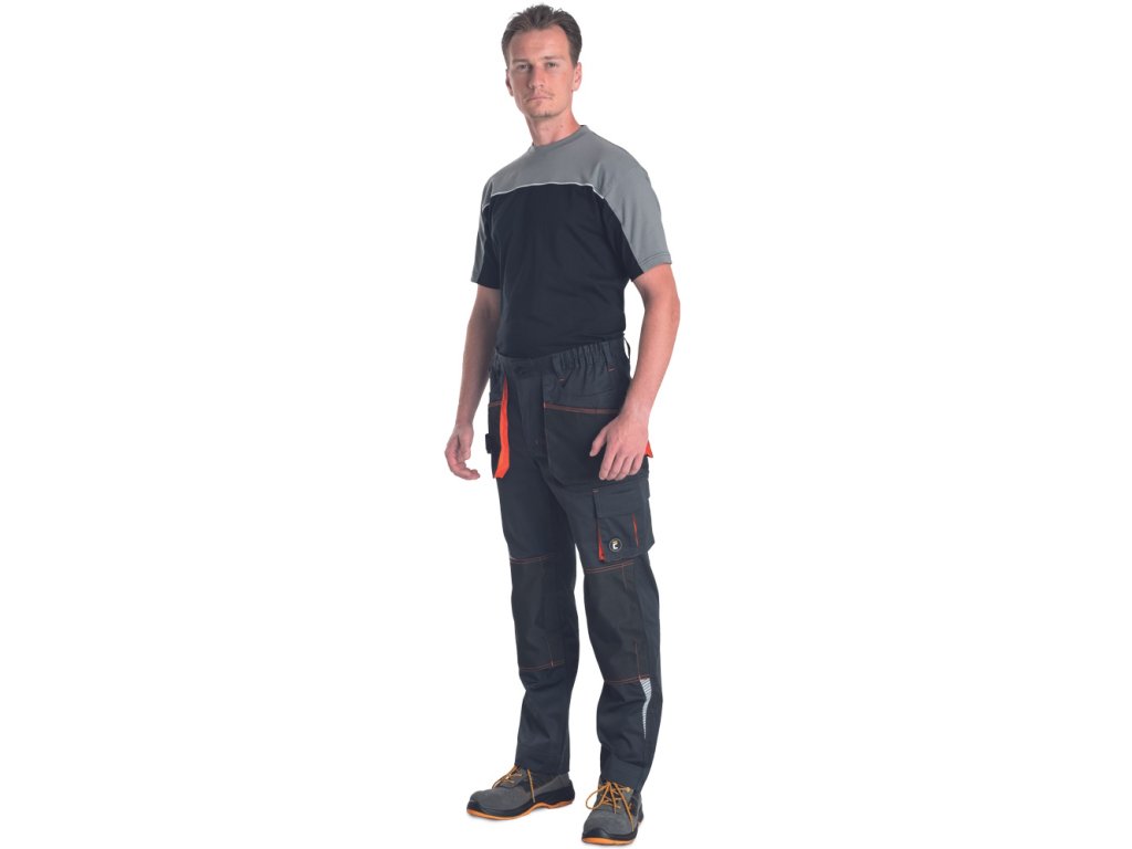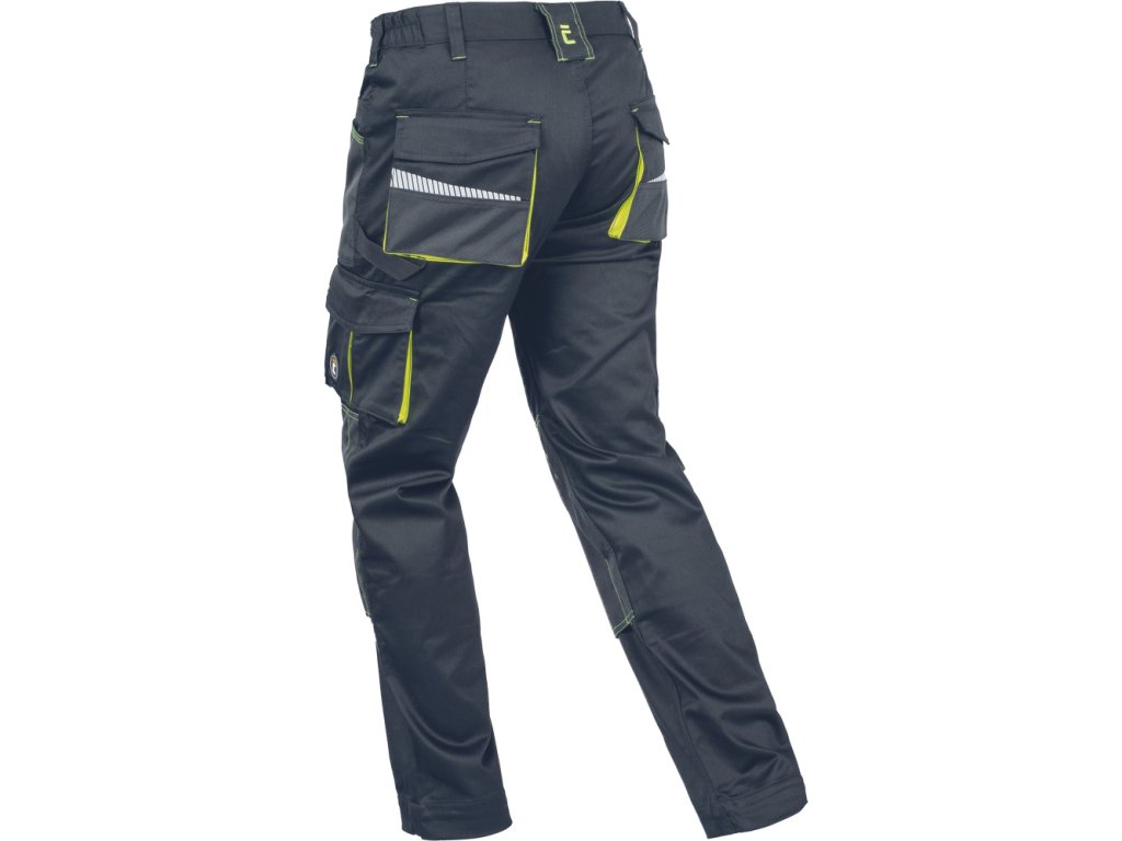 Popis: pánske strečové pracovné nohavice • elastický pás • multifunkčné vrecká • vystužené kolenné vrecká Oxford 600D na vloženie kolenných chráničov, potlač reflexných segmentov • nastaviteľná dĺžka nohavíc