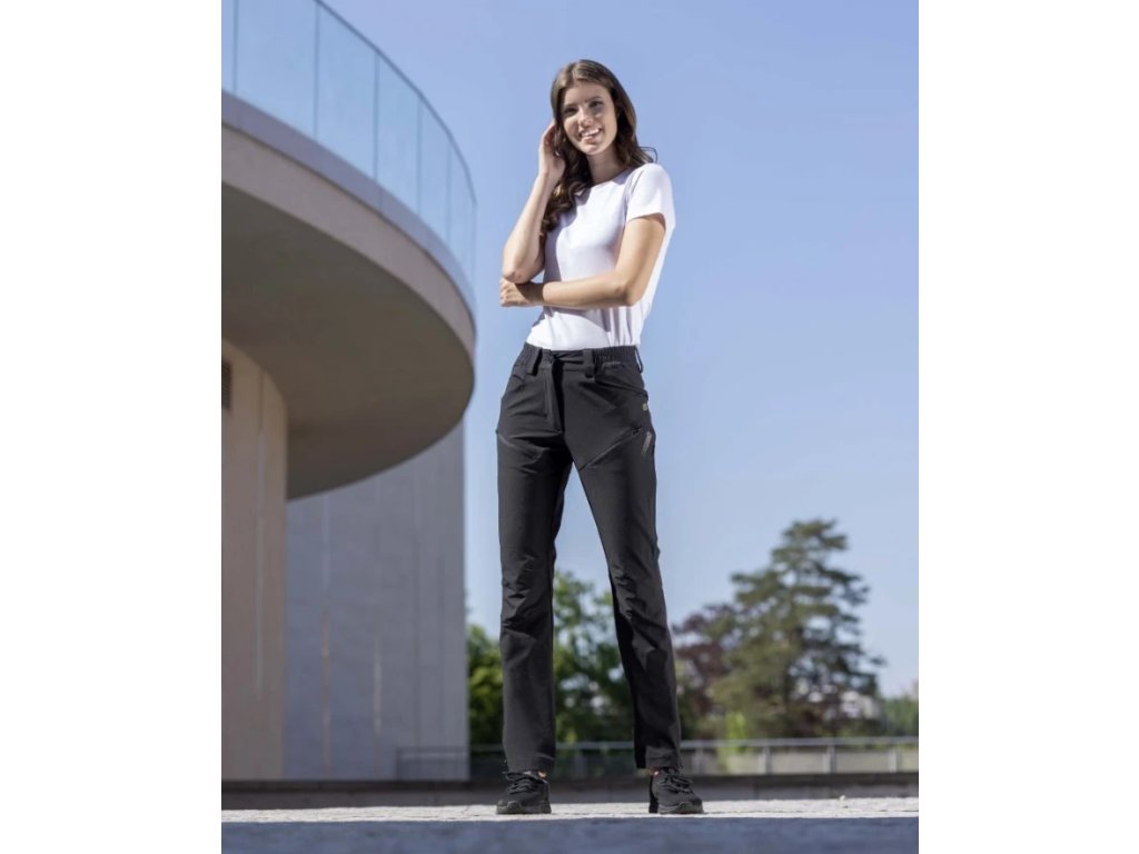 Funkčné dámske outdoorové nohavice z elastického materiálu v prepracovanom štíhlom strihu SLIM FIT. Nohavice sú vodoodpudivé a súčastne priedušné, spoľahlivo odvádzajú vlhkosť smerom na povrch, vhodné aj do náročných klimatických podmienok a pre extrémnu záťaž. Špeciálna vnútorná vrstva zaručuje vysoký komfort pri nosení. Zadný diel člení sedlo, na prednom diely nohavíc sú umiestnené 2 zipsové vrecká, bočné ventilačné zipsy so sieťkou, pružný tvarovaný obvod pasu pre maximálne pohodlie. Zvýšenú bezpečnosť zaišťuje reflexná 3D potlač.