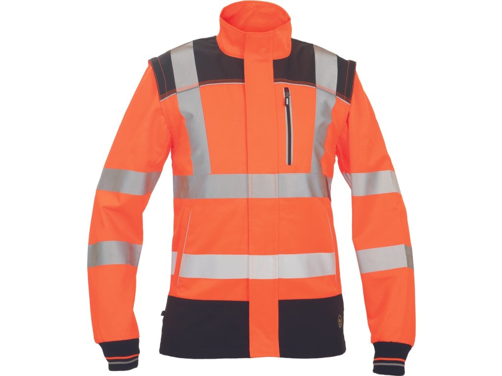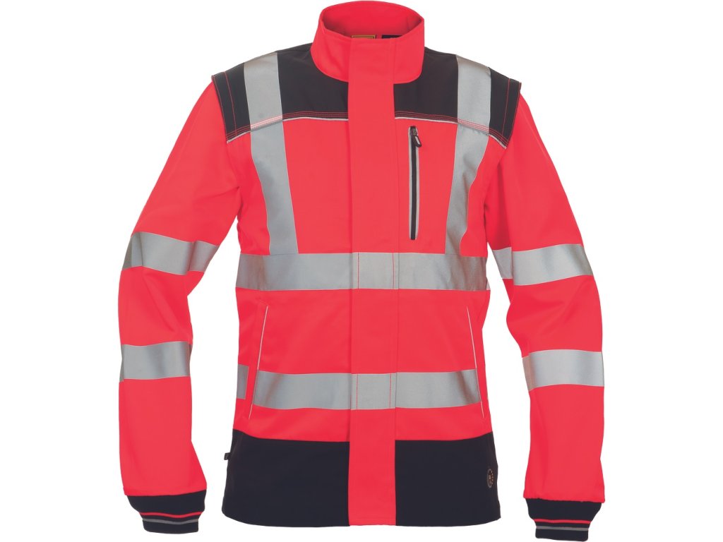 • pánska pracovná bunda moderného strihu v prevedení hi-vis materiálu so stojačikom z prestížnej rady KNOXFIELD HI-VIS ČERVA