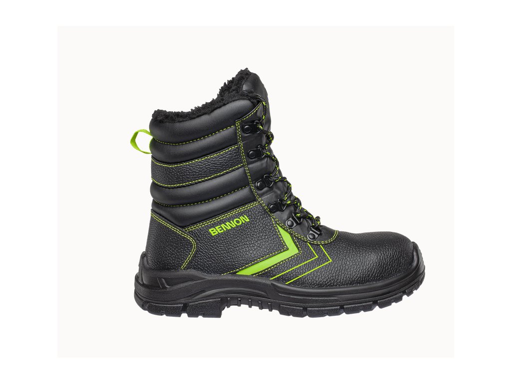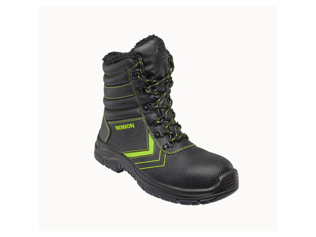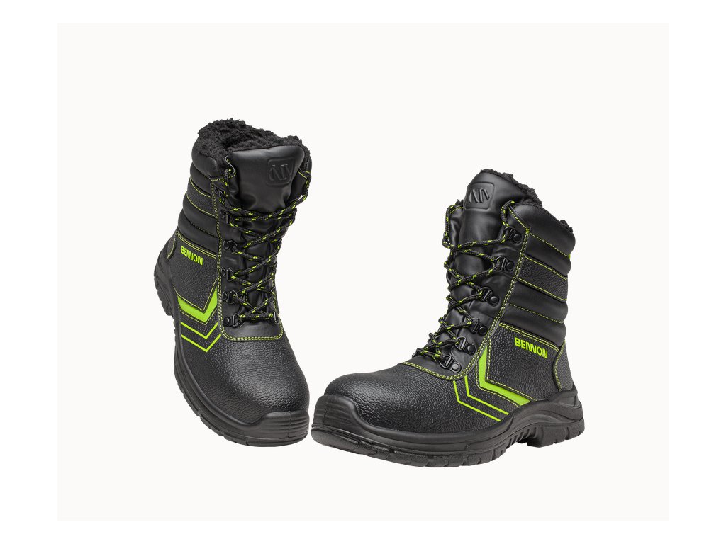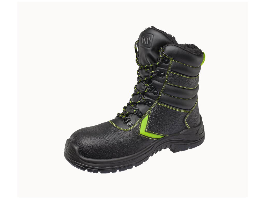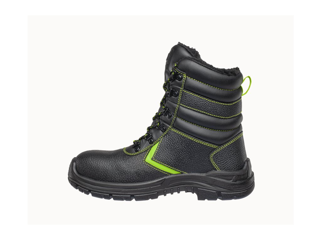 Ľahká a pevná zimná holeňová obuv vybavená oceľovou špicou a planžetou v podrážke proti prepichnutiu vhodná do vonkajších prevádzok.